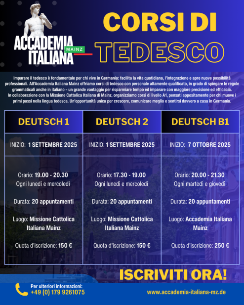 PER ULTERIORI INFORMAZIONI CONTATTARE ACCADEMIA ITALIANA MAINZ!